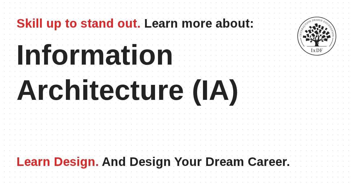 Information architecture (IA) is the discipline of making information findable and understandable. It includes searching, browsing, categorizing and presenting relevant and contextual information to help people understand their surroundings and find what they’re looking for online and in the real world.