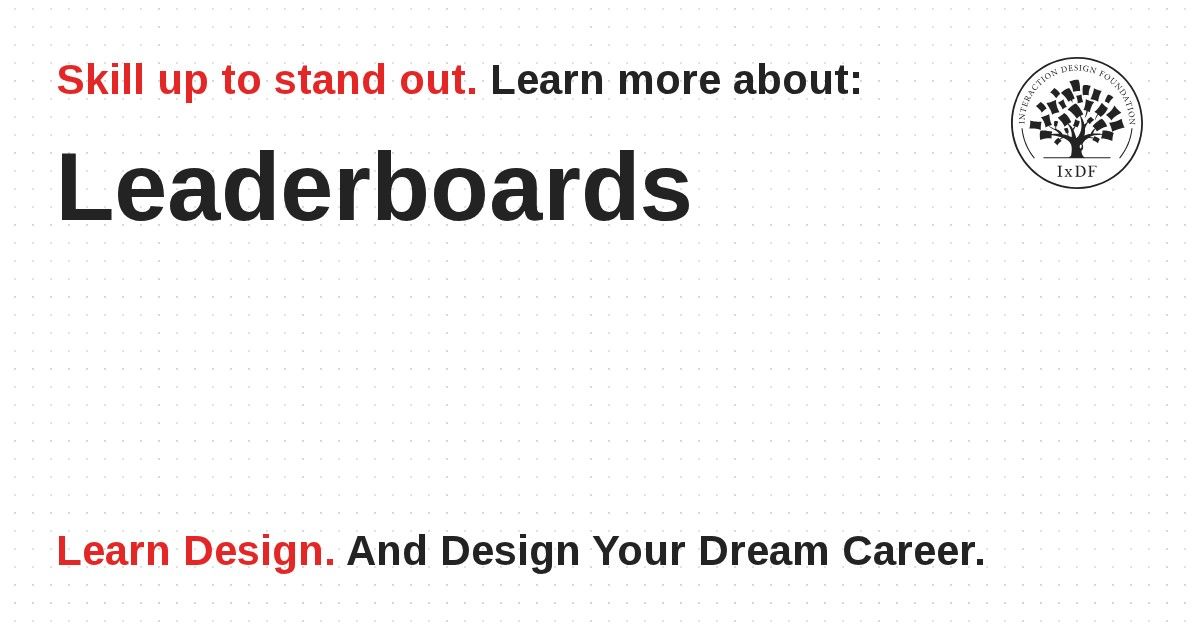 We use leader boards in the Interaction Design Foundation’s online courses, to encourage course participants to compare themselves to their national and global group of peers.