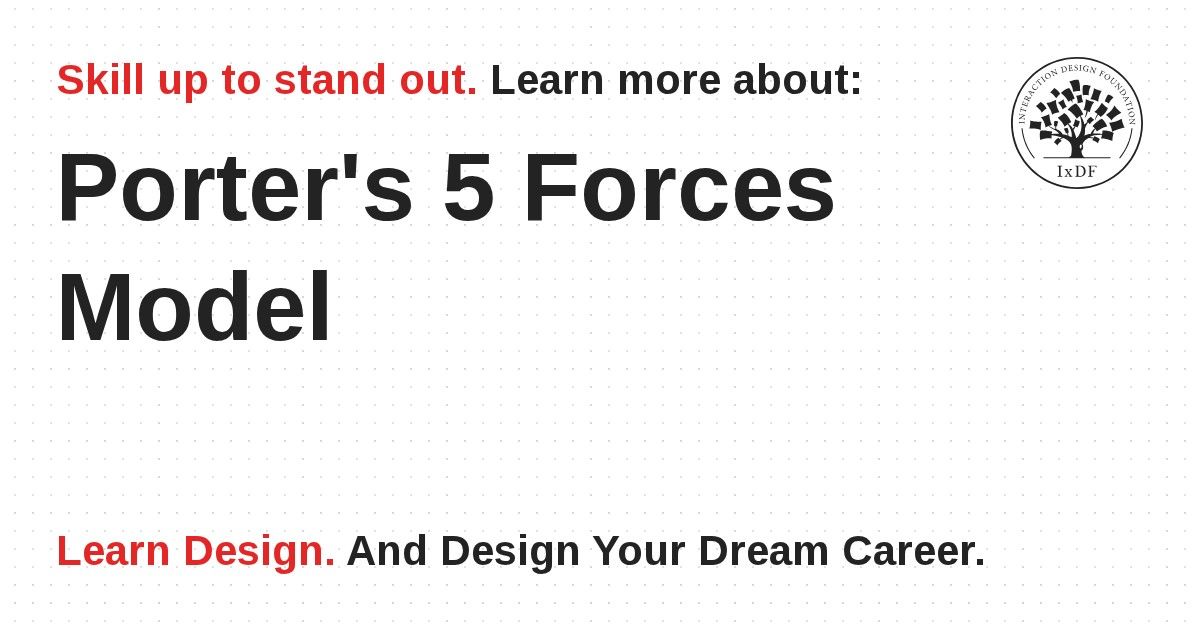Porter’s 5 forces model is a simple but effective way to examine a business or product’s position within a market. It helps the designer or marketer to better understand how to provide competitive advantage and how best to promote products in that market.