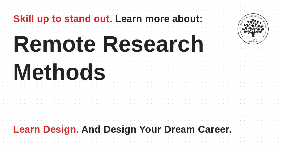 Make learning as easy as watching Netflix: Learn more about Remote Research Methods by taking the online IxDF Course User Research – Methods and Best Practices.