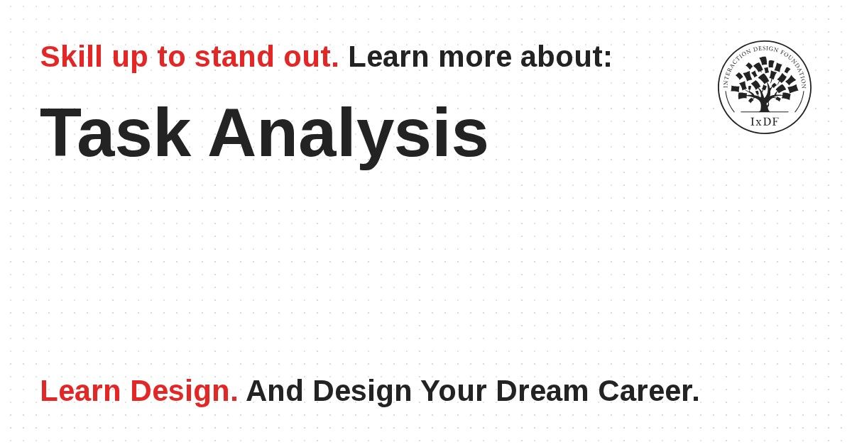 One of the most important steps in the design thinking or human-centered design (HCD) methodology is to define the users' problems. This means to clearly identify and articulate problems in the UX so that you can later begin the ideation process (i.e., generate great ideas on how to solve said problems). Task analysis is a simple exercise that UX designers can undertake during the definition of a problem, which can help identify opportunities to improve and generate some preliminary ideas as to how you might approach these challenges. Let's find out how.