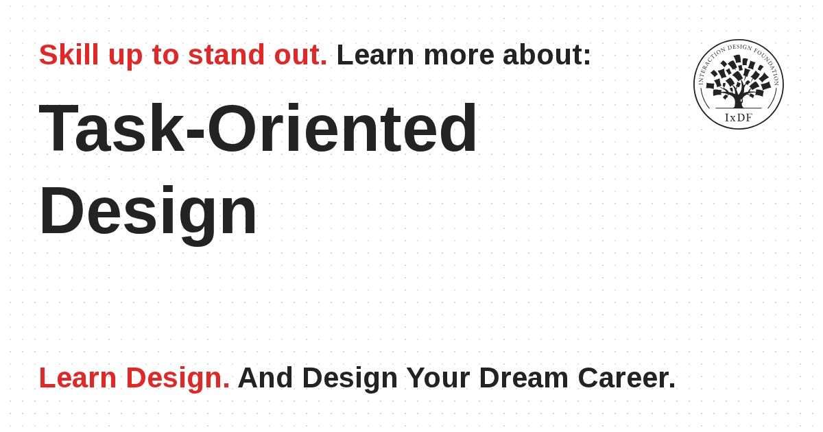Task-oriented design is an approach to design that focuses on user task completion instead of designing with specific devices, features, aesthetics or technical considerations in mind.