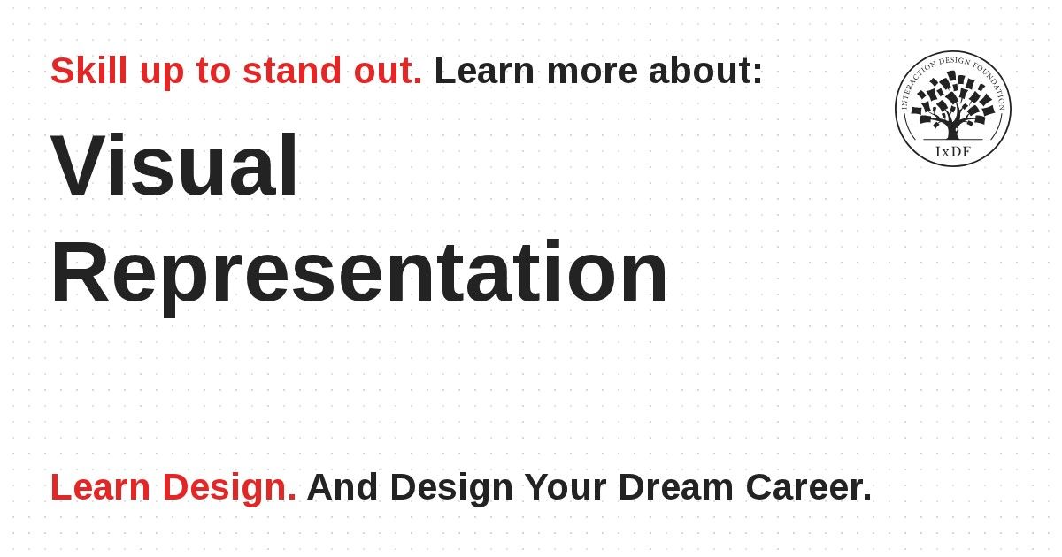 Visual Representation refers to the principles by which markings on a surface are made and interpreted. Designers use representations like typography and illustrations to communicate information, emotions and concepts. Color, imagery, typography and layout are crucial in this communication.
