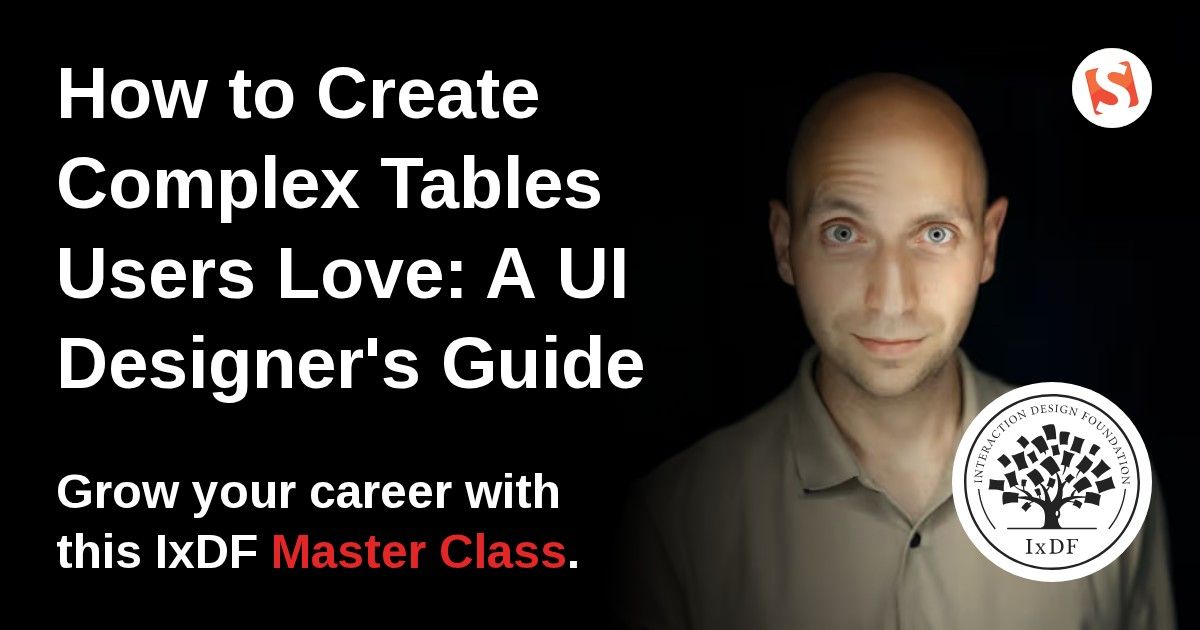 Watch this Master Class to learn practical design patterns, usability guidelines, and real-life examples to create tables that users love. Improve the user experience of your designs and advance your career as a UI designer. Register now and become a table design master!