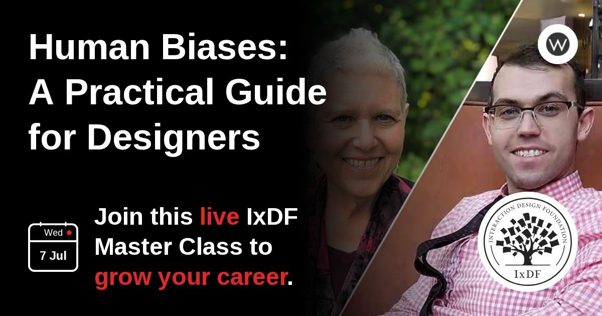 When you understand human biases better, it will help you improve your research and design processes in unprecedented ways. If you’ve been looking for a way to dive into this topic or update your knowledge, this Master Class is the perfect way to do so.