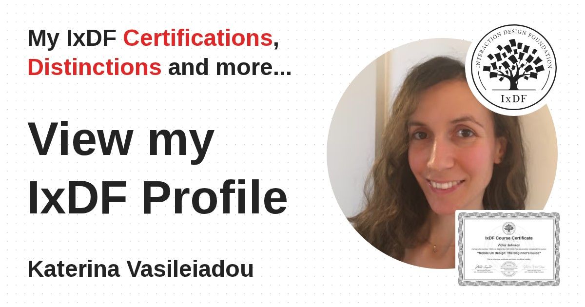 Distinctions are conferred upon Katerina Vasileiadou in formal recognition of their notable achievements and contributions, as stipulated by the IxDF Educational Codex.