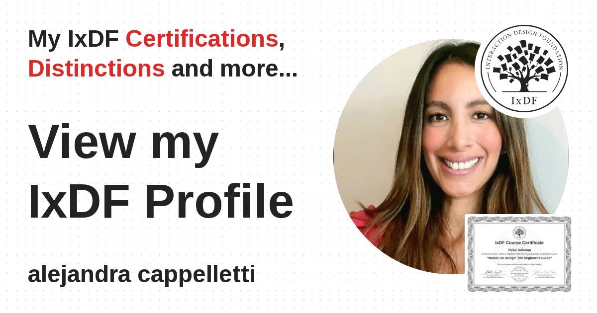 Distinctions are conferred upon alejandra cappelletti in formal recognition of their notable achievements and contributions, as stipulated by the IxDF Educational Codex.