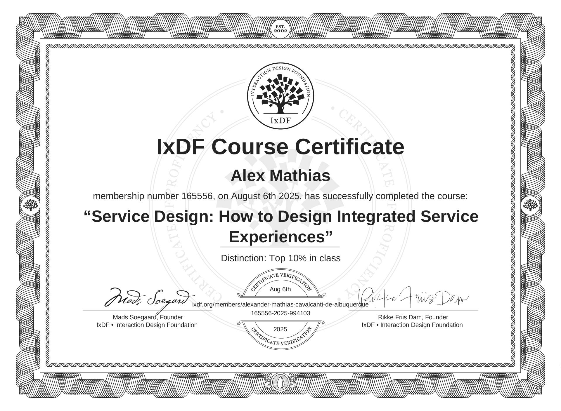 Alex Mathias's Course Certificate: Service Design: How to Design Integrated Service Experiences