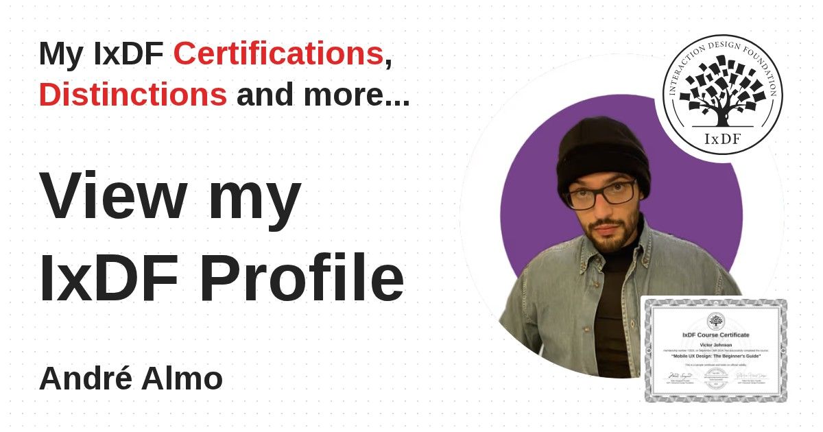 Distinctions are conferred upon André Almo in formal recognition of their notable achievements and contributions, as stipulated by the IxDF Educational Codex.