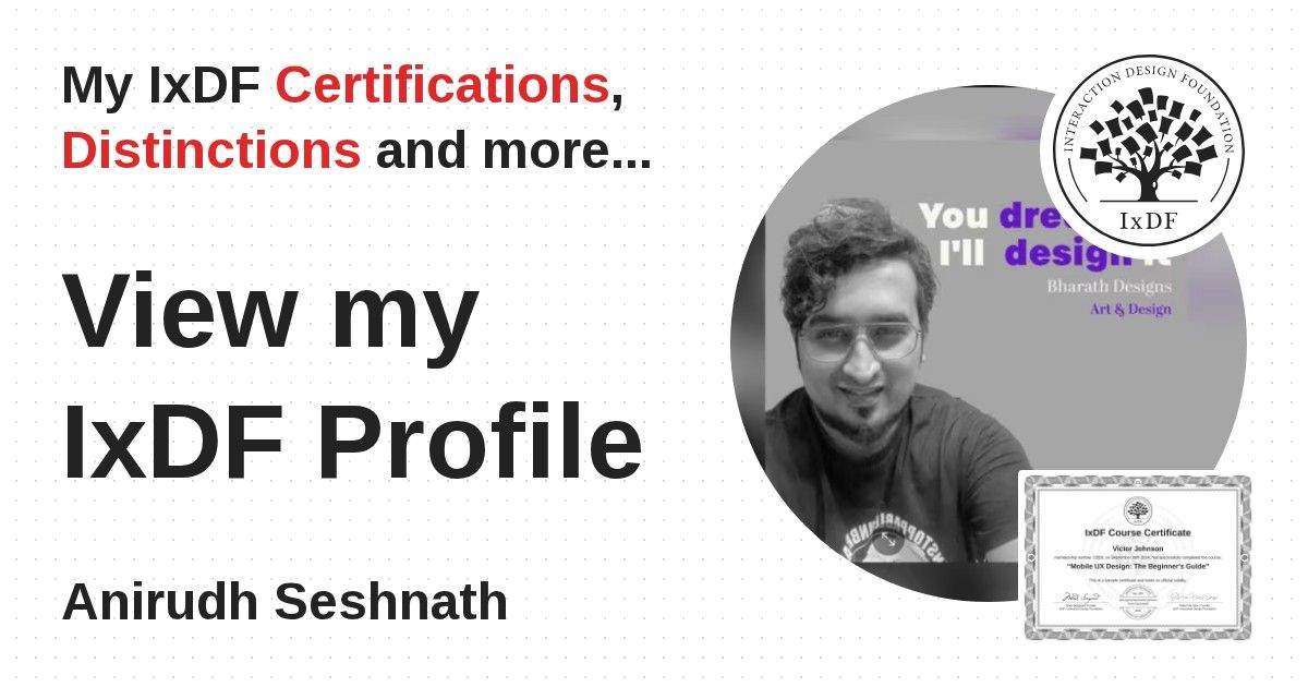Distinctions are conferred upon Anirudh Seshnath in formal recognition of their notable achievements and contributions, as stipulated by the IxDF Educational Codex.