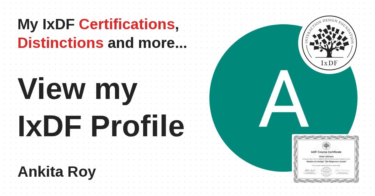 IxDF Course Certificates are awarded to Ankita Roy in formal recognition of their coursework surpassing the rigorous benchmarks of exceptional performance established by the IxDF Educational Codex.
