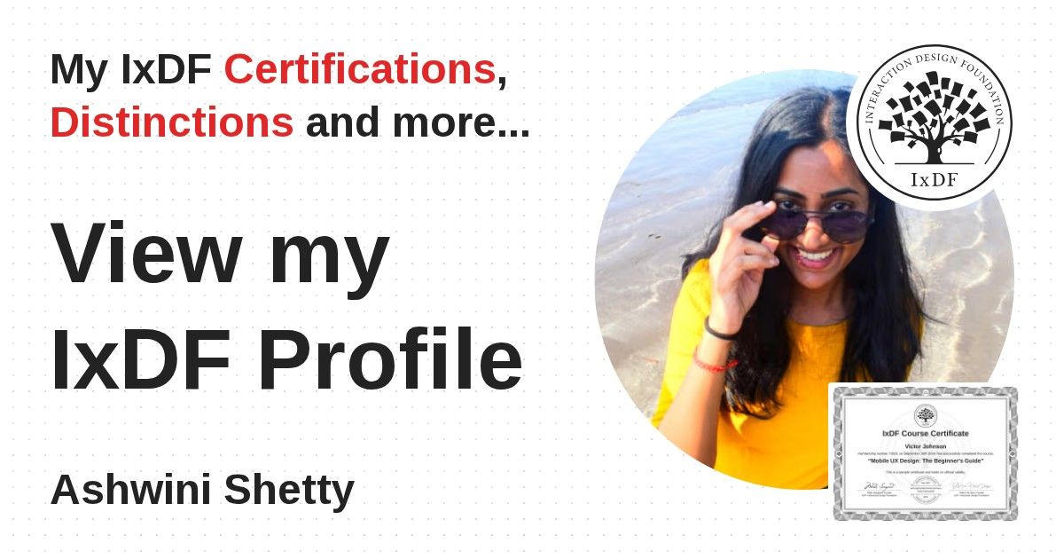 IxDF Course Certificates are awarded to Ashwini Shetty in formal recognition of their coursework surpassing the rigorous benchmarks of exceptional performance established by the IxDF Educational Codex.