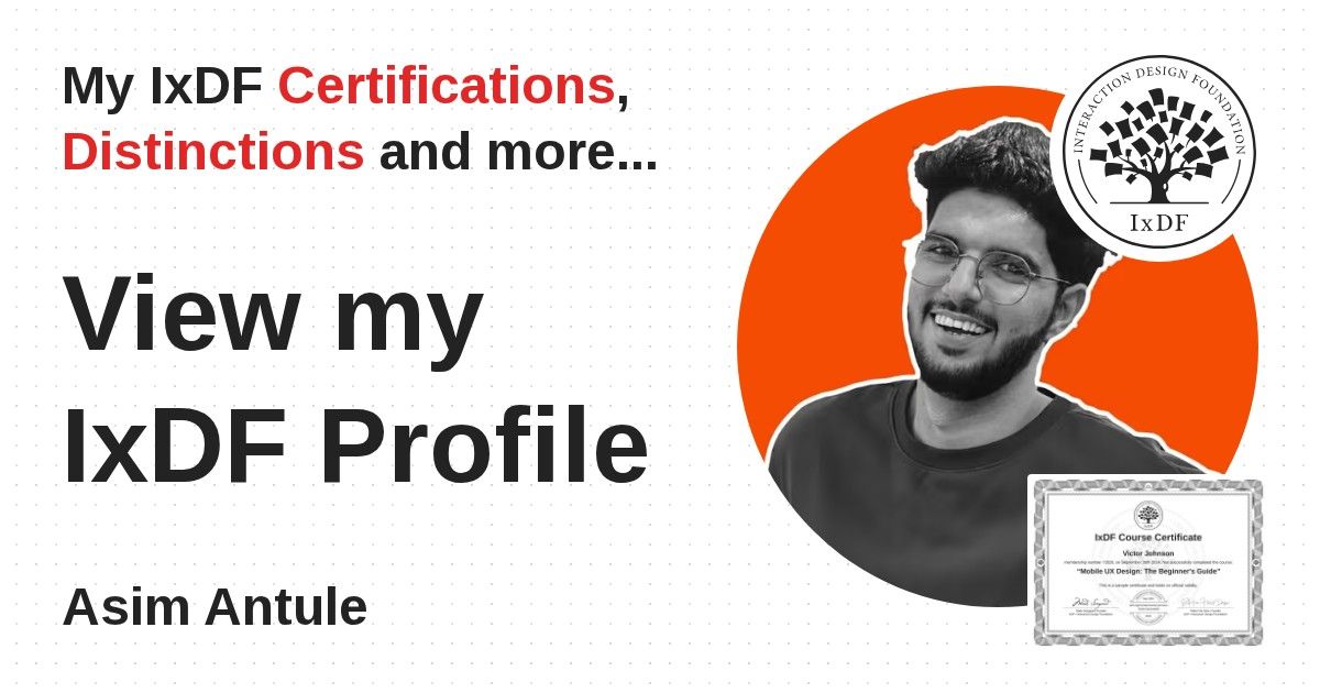 Distinctions are conferred upon Asim Antule in formal recognition of their notable achievements and contributions, as stipulated by the IxDF Educational Codex.