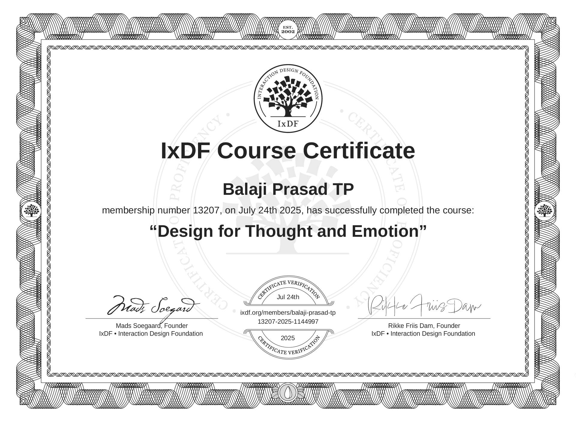 Balaji Prasad TP's Course Certificate: Design for Thought and Emotion