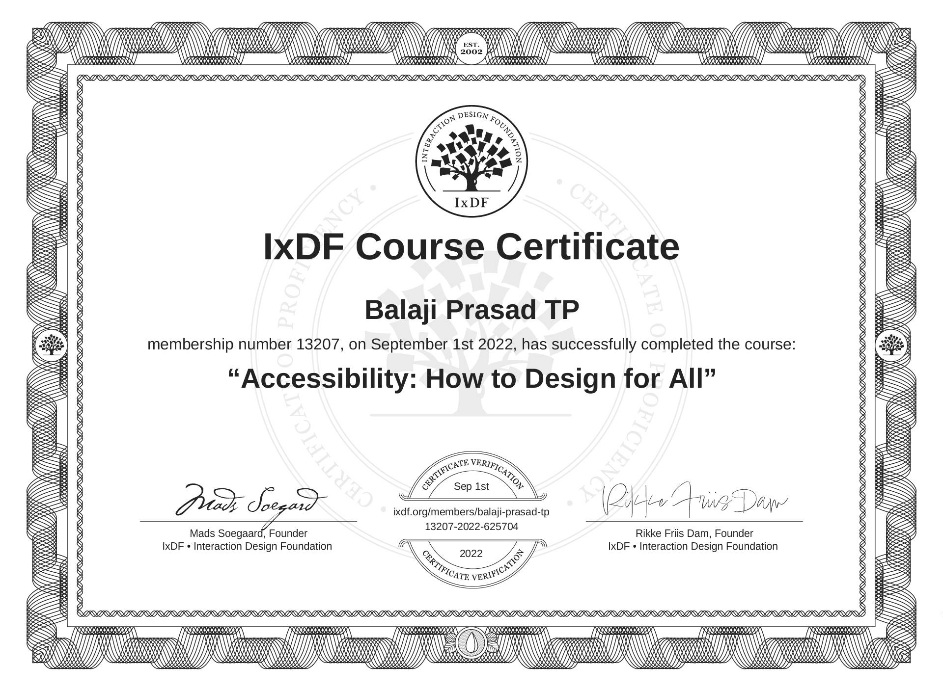 IxDF Course Certificate awarded to Balaji Prasad TP for completing the "Accessibility: How to Design for All" course