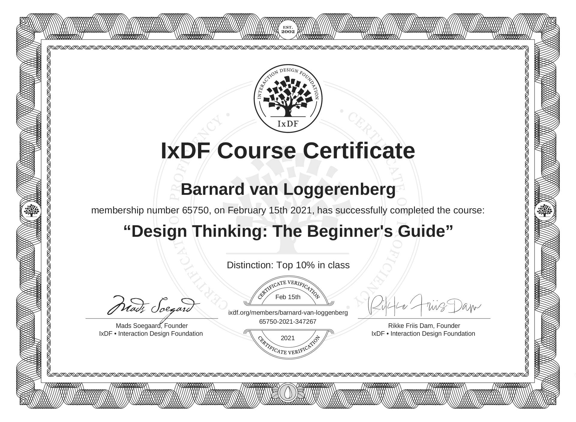 IxDF Course Certificates are awarded to Barnard van Loggerenberg in formal recognition of their coursework surpassing the rigorous benchmarks of exceptional performance established by the IxDF Educational Codex.