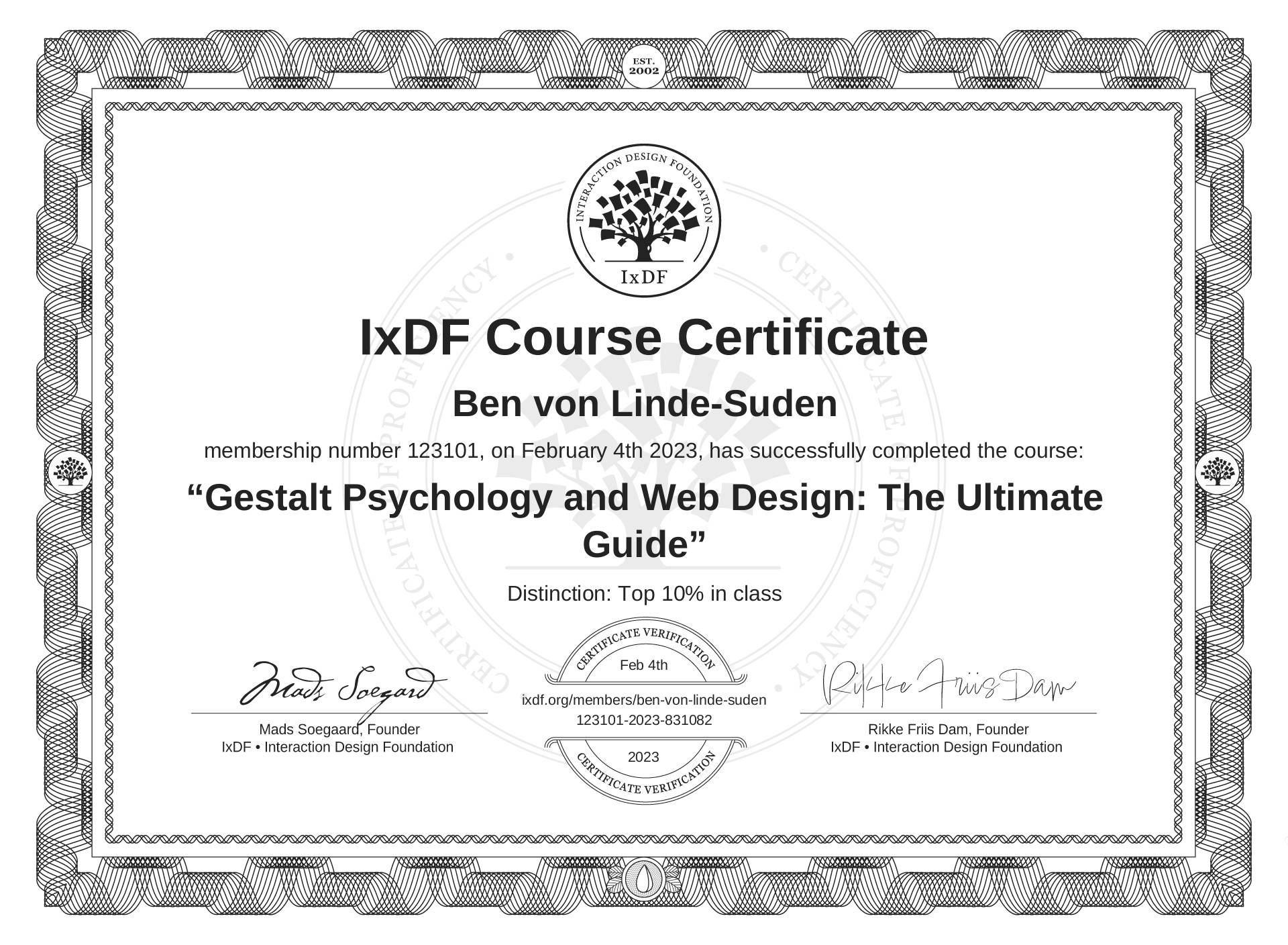 Ben von Linde-Suden's Course Certificate: Gestalt Psychology and Web Design: The Ultimate Guide
