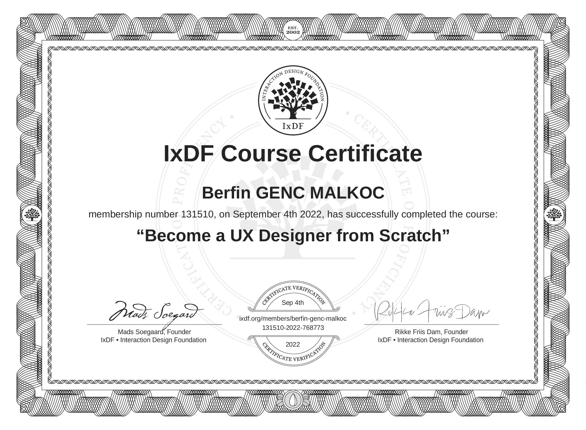 Berfin GENÇ MALKOÇ's Course Certificate: Become a UX Designer from Scratch