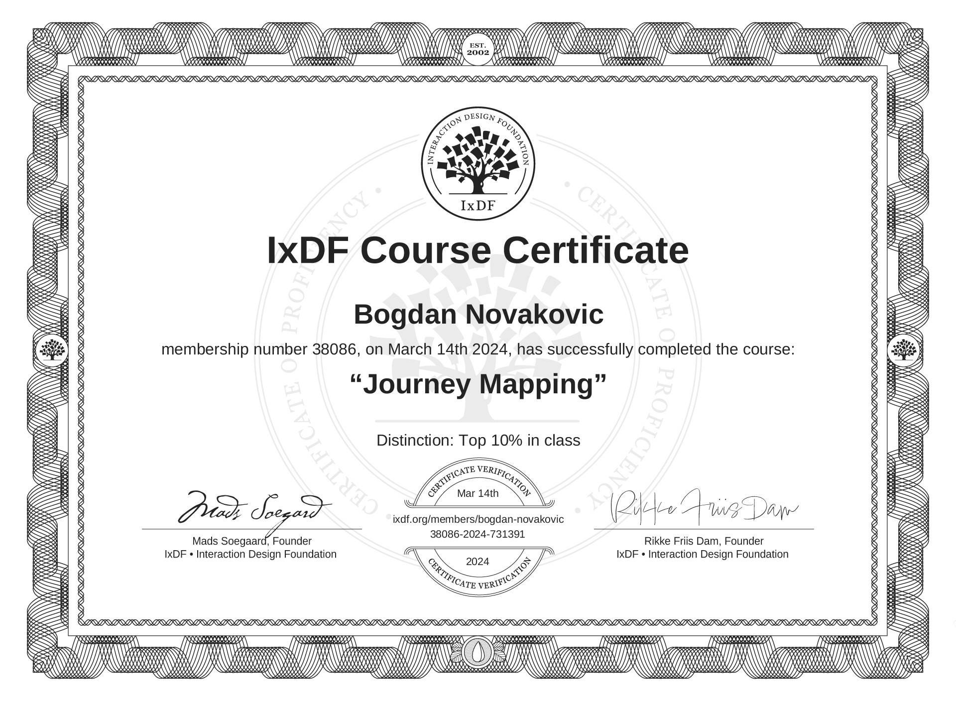 This IxDF Membership Certificate is issued to Bogdan Novakovic