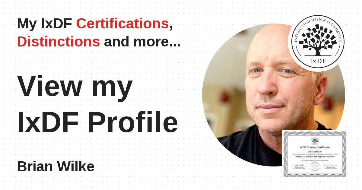 IxDF Course Certificates are awarded to Brian Wilke in formal recognition of their coursework surpassing the rigorous benchmarks of exceptional performance established by the IxDF Educational Codex.
