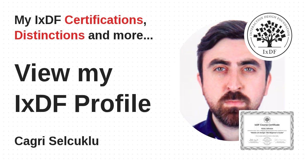 IxDF Course Certificates are awarded to Cagri Selcuklu in formal recognition of their coursework surpassing the rigorous benchmarks of exceptional performance established by the IxDF Educational Codex.