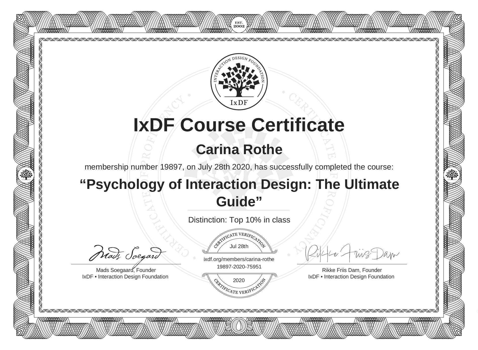 Carina Rothe's Course Certificate: Psychology of Interaction Design: The Ultimate Guide