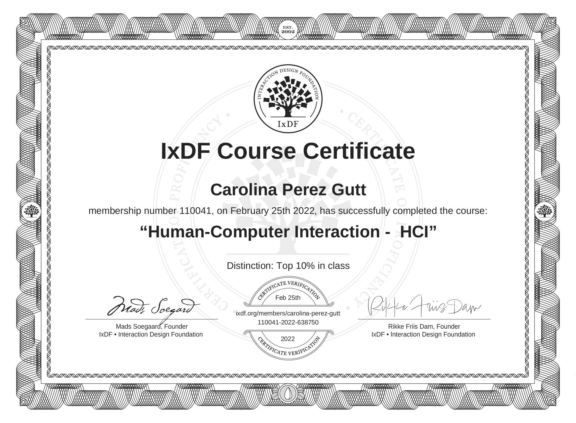This IxDF Membership Certificate is issued to Carolina Perez Gutt