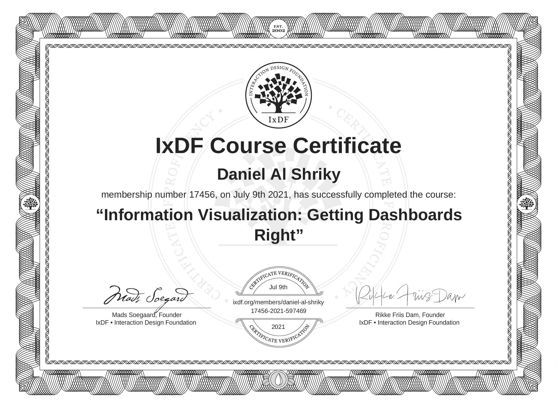 Daniel Al Shriky's Course Certificate: Information Visualization: Getting Dashboards Right