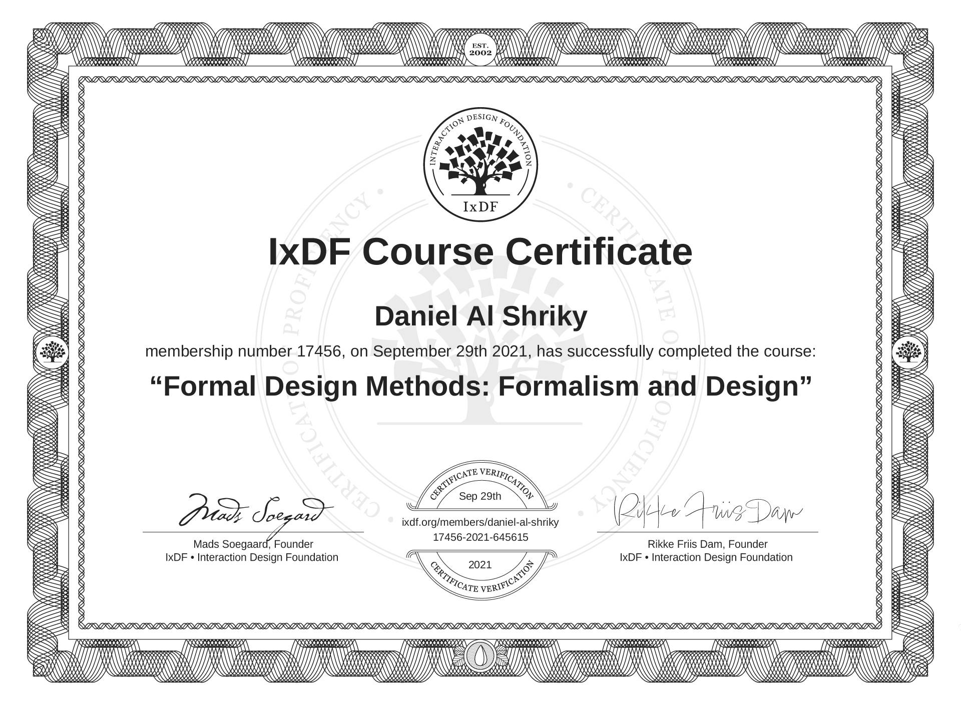 This IxDF Membership Certificate is issued to Daniel Al Shriky