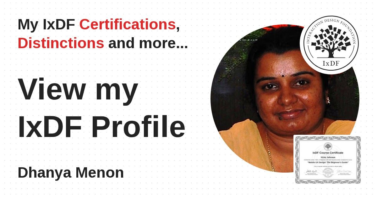 Distinctions are conferred upon Dhanya Menon in formal recognition of their notable achievements and contributions, as stipulated by the IxDF Educational Codex.