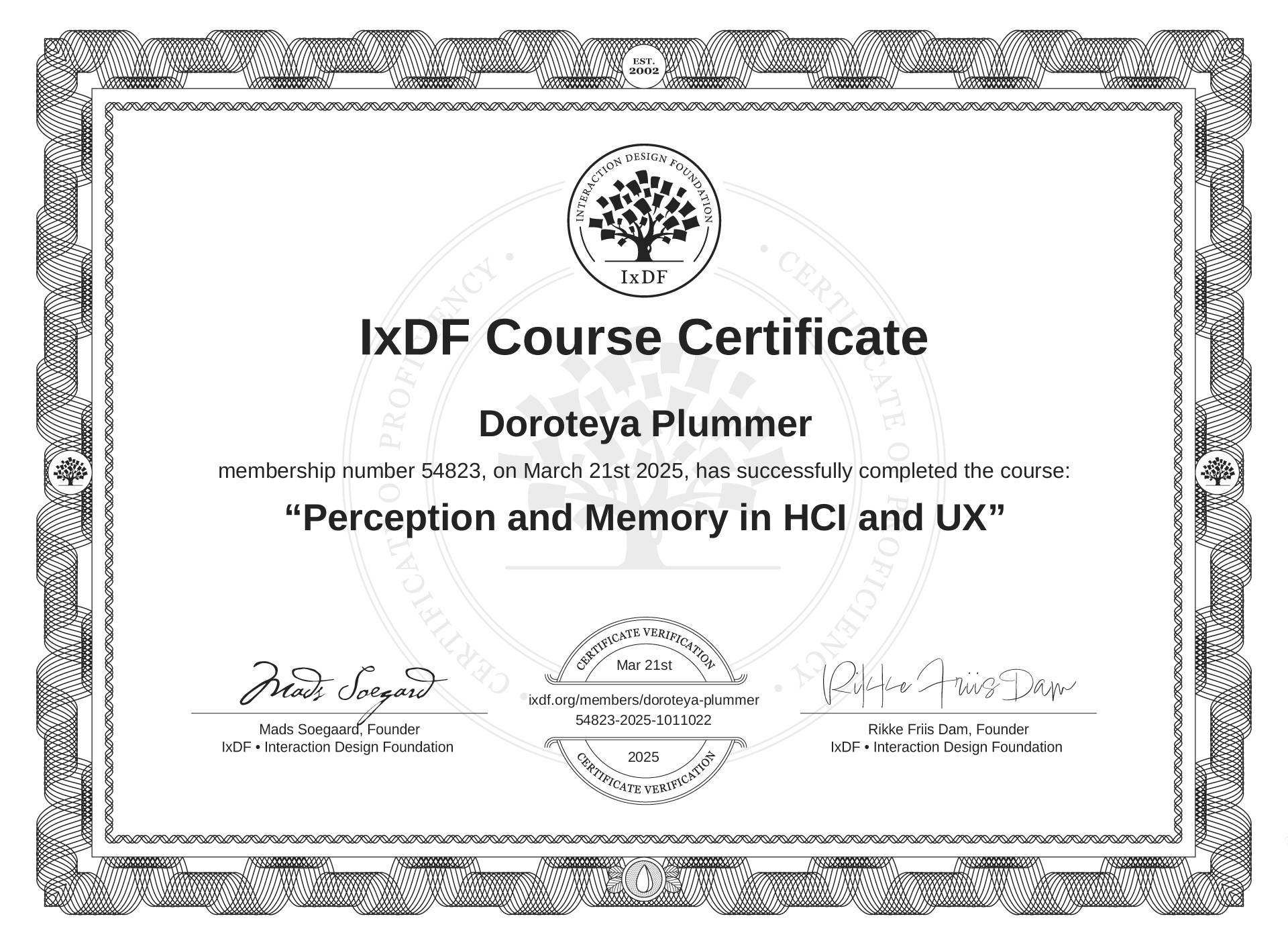 Doroteya Plummer's Course Certificate: Perception and Memory in HCI and UX