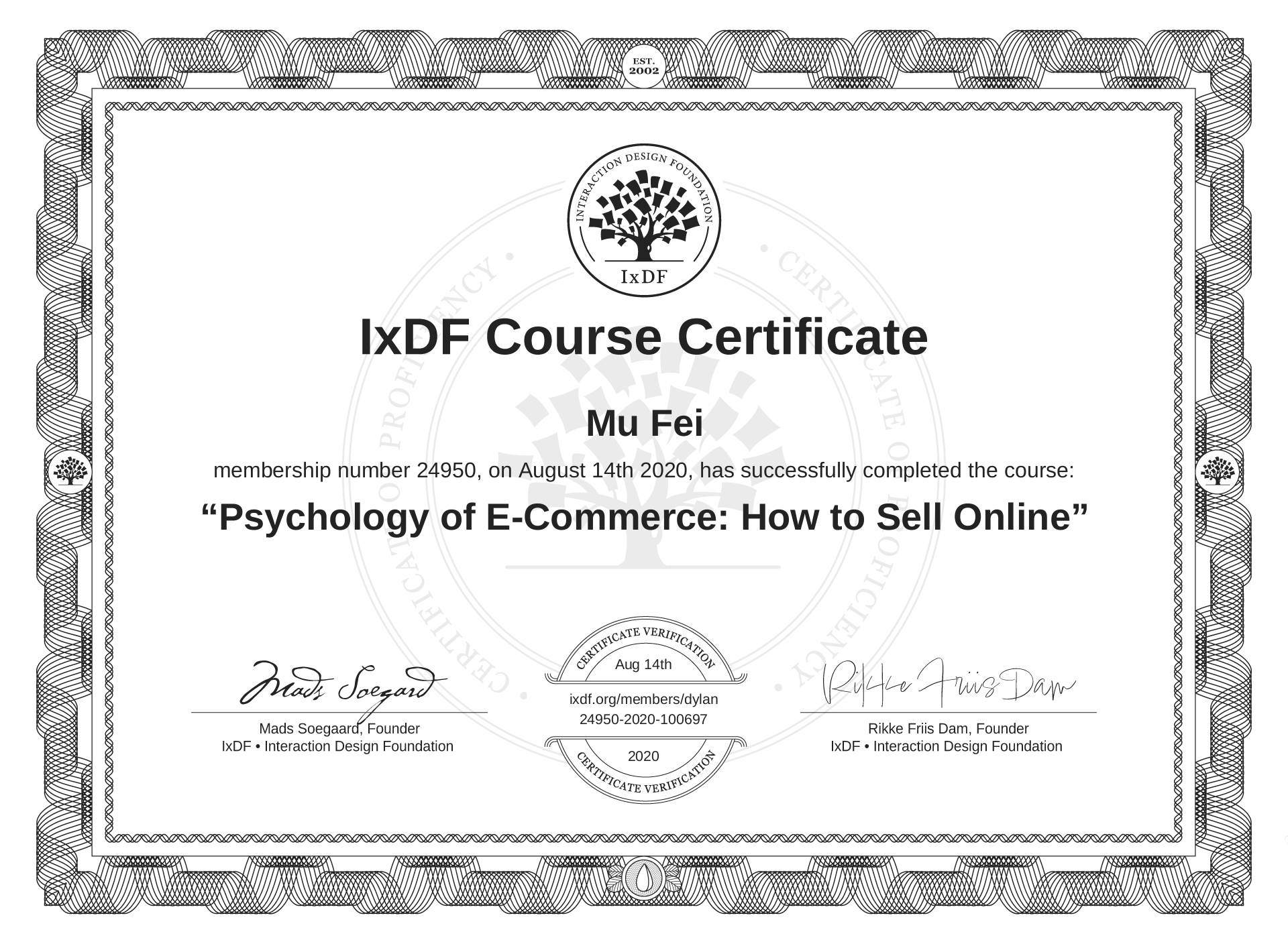 Mu Fei's Course Certificate: Psychology of E-Commerce: How to Sell Online
