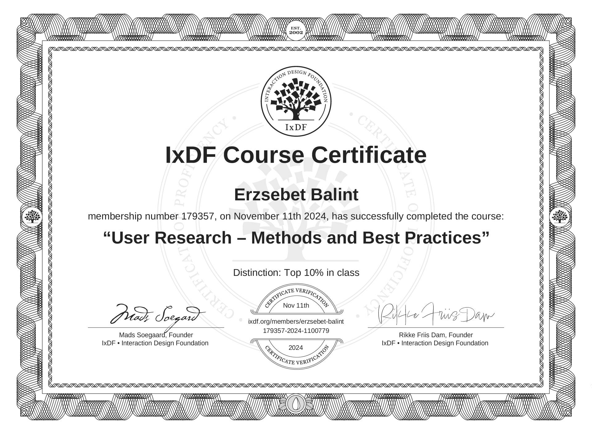 This IxDF Membership Certificate is issued to Erzsébet Bálint