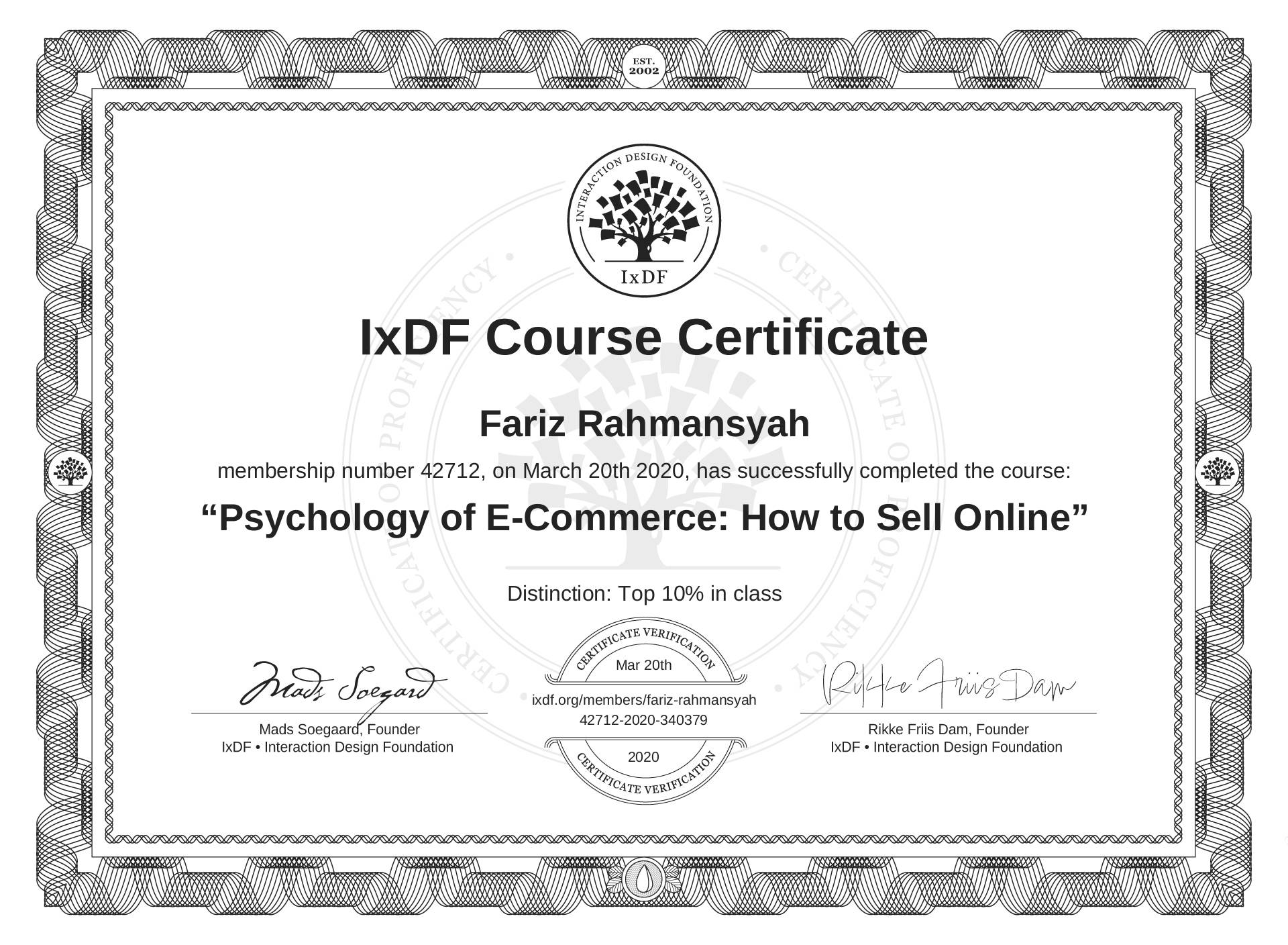 Fariz Rahmansyah's Course Certificate: Psychology of E-Commerce: How to Sell Online
