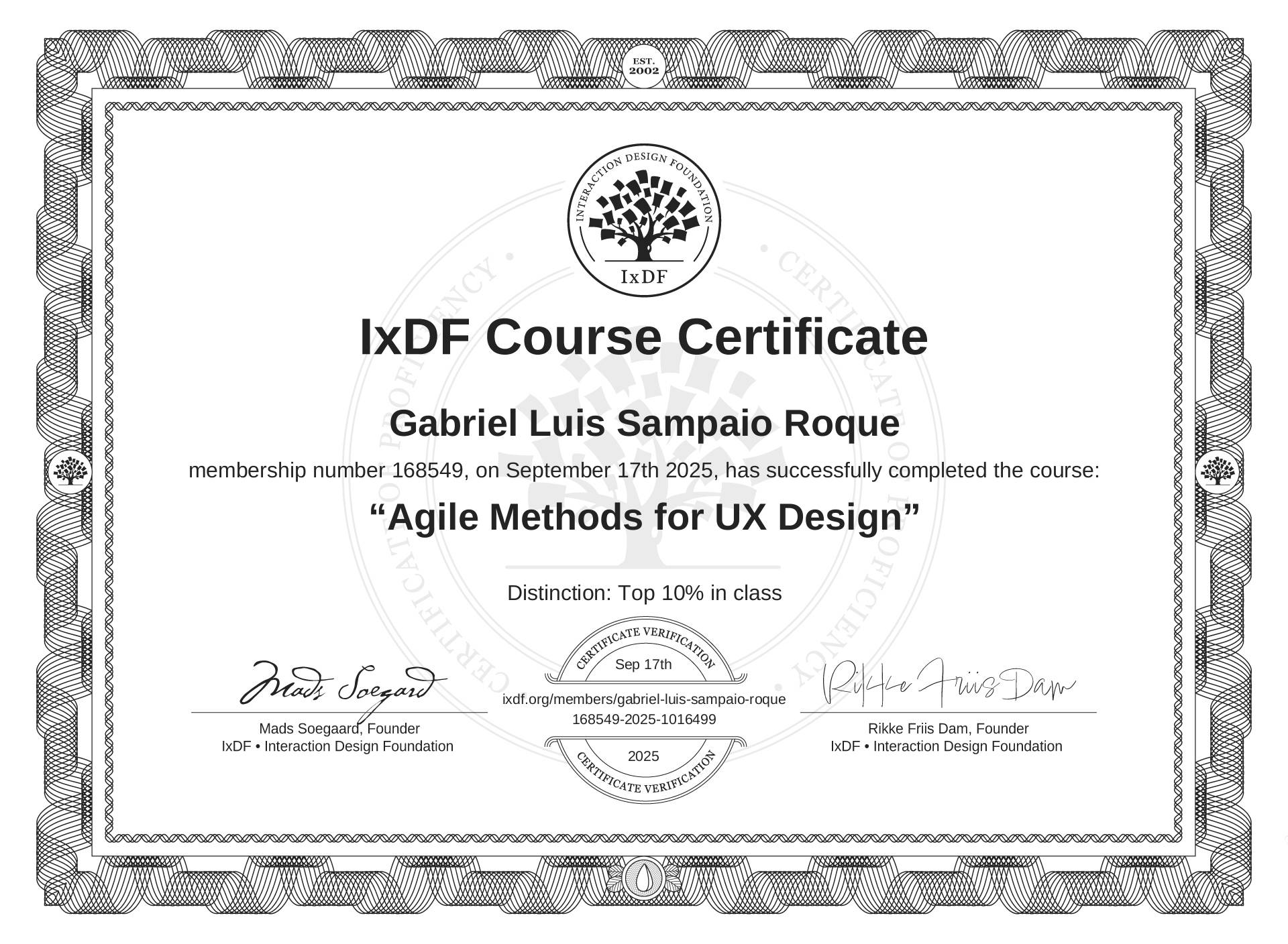 This IxDF Membership Certificate is issued to Gabriel Luís Sampaio Roque