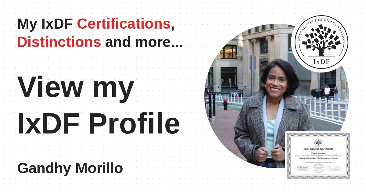 IxDF Course Certificates are awarded to Gandhy Morillo in formal recognition of their coursework surpassing the rigorous benchmarks of exceptional performance established by the IxDF Educational Codex.