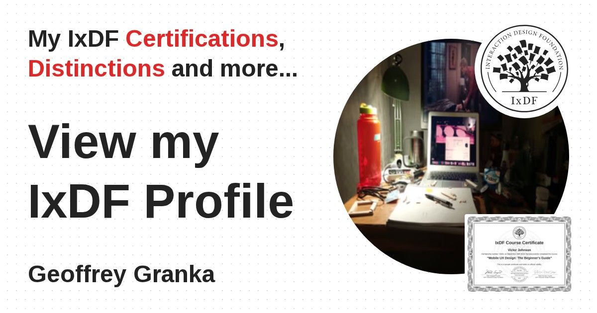 This IxDF Membership Certificate is issued to Geoffrey Granka