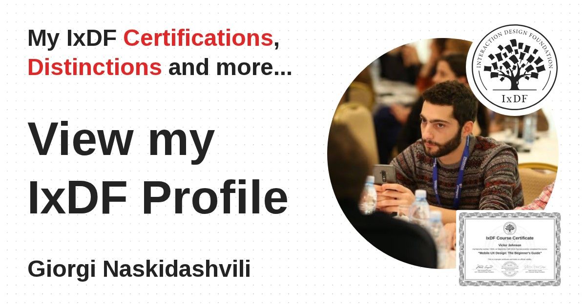 IxDF Course Certificates are awarded to Giorgi Naskidashvili in formal recognition of their coursework surpassing the rigorous benchmarks of exceptional performance established by the IxDF Educational Codex.