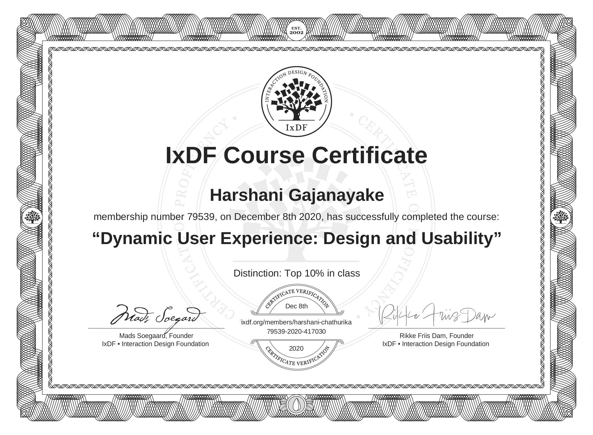 This IxDF Membership Certificate is issued to Harshani Gajanayake