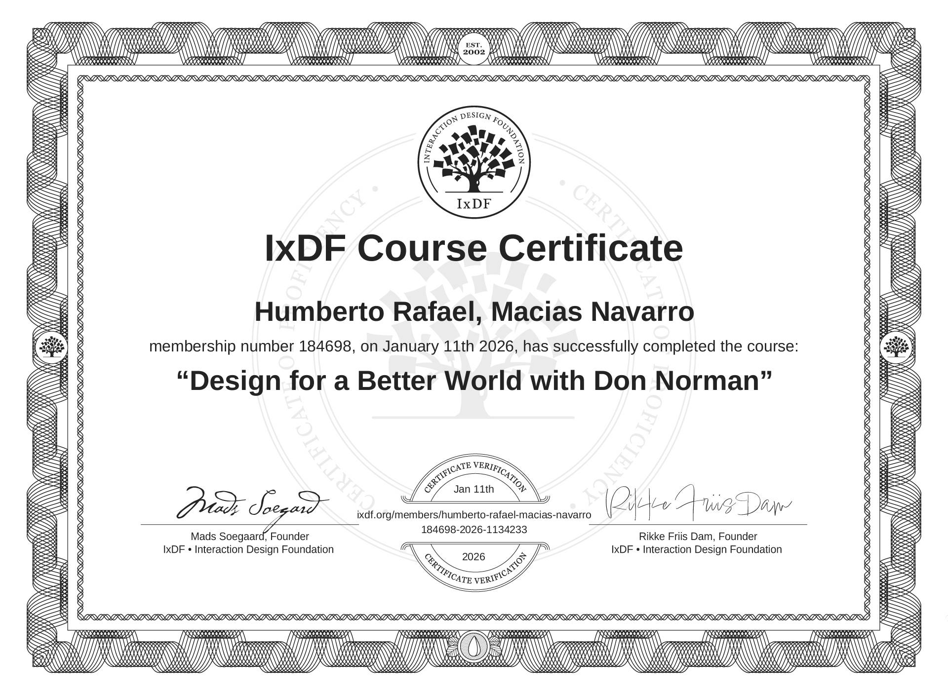 Humberto Rafael, Macías Navarro's Course Certificate: Design for a Better World with Don Norman