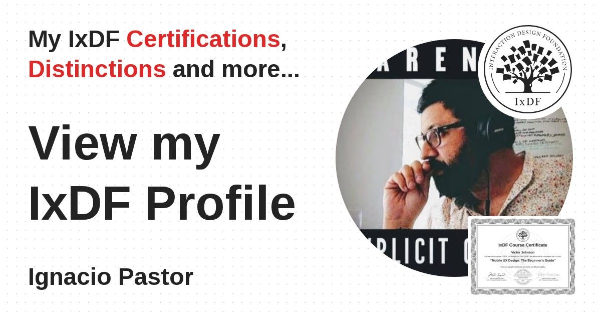 IxDF Course Certificates are awarded to Ignacio Pastor in formal recognition of their coursework surpassing the rigorous benchmarks of exceptional performance established by the IxDF Educational Codex.