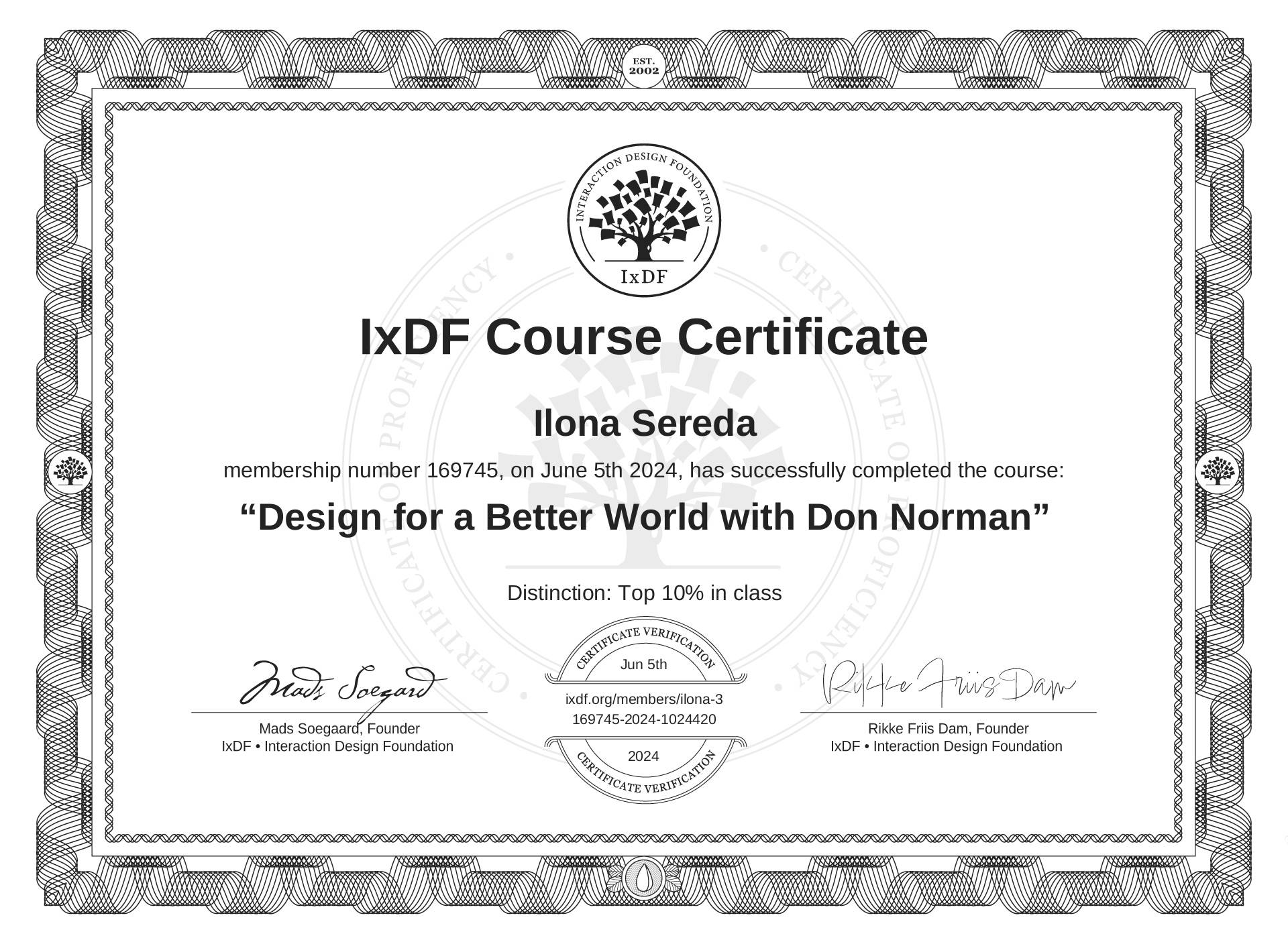 Ilona Sereda's Course Certificate: Design for a Better World with Don Norman