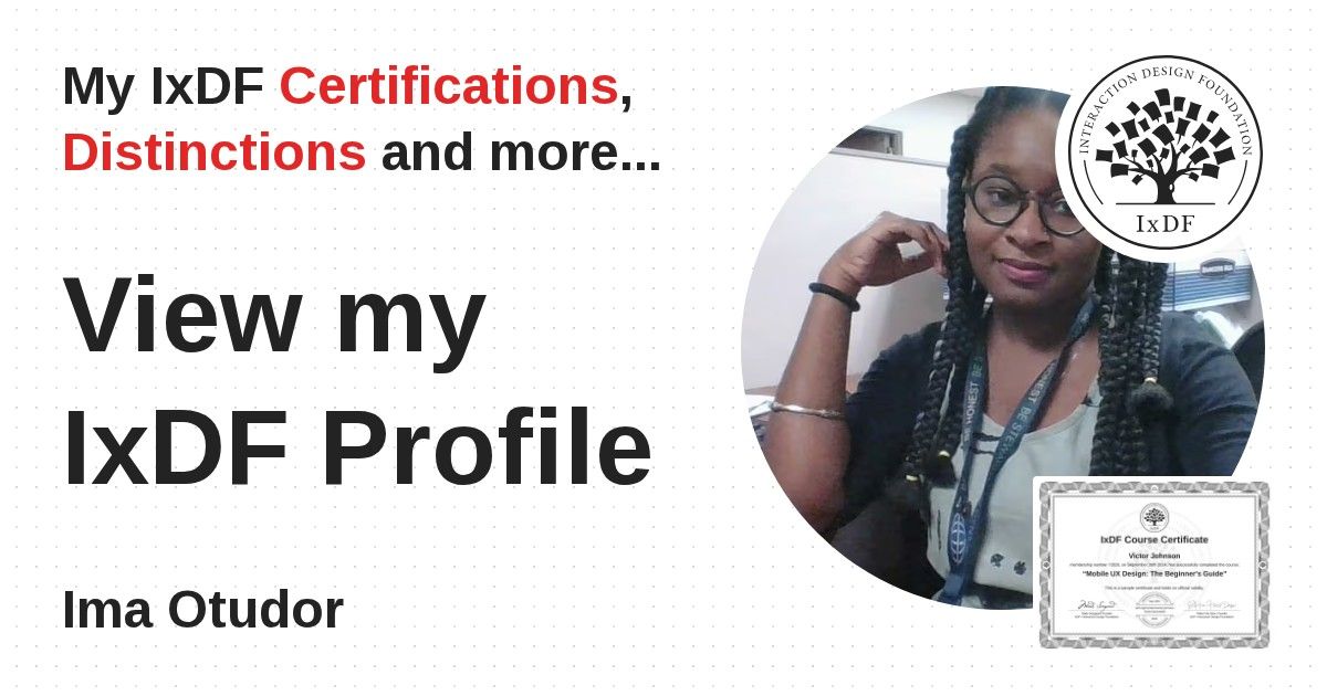 Distinctions are conferred upon Ima Otudor in formal recognition of their notable achievements and contributions, as stipulated by the IxDF Educational Codex.