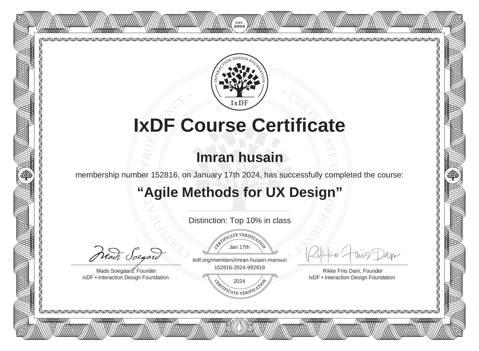 Imran husain's Course Certificate: Agile Methods for UX Design