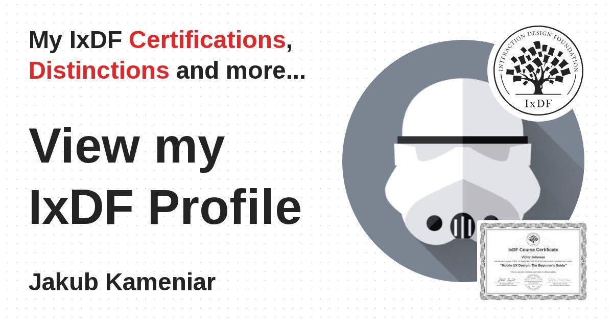IxDF Course Certificates are awarded to Jakub Kameniar in formal recognition of their coursework surpassing the rigorous benchmarks of exceptional performance established by the IxDF Educational Codex.