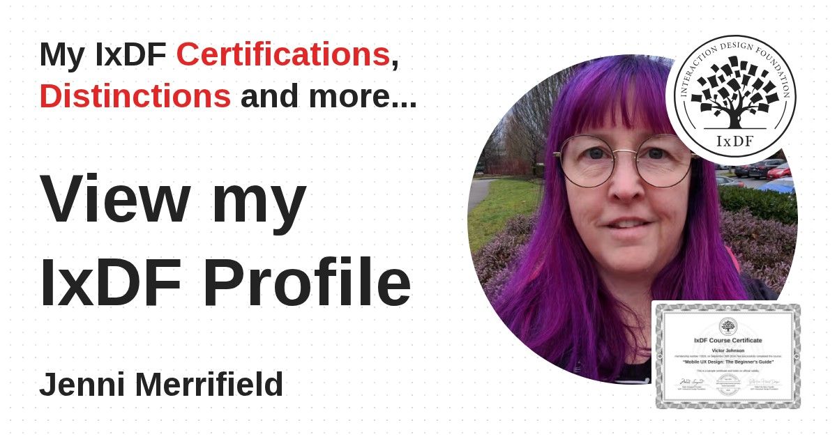 Distinctions are conferred upon Jenni Merrifield in formal recognition of their notable achievements and contributions, as stipulated by the IxDF Educational Codex.
