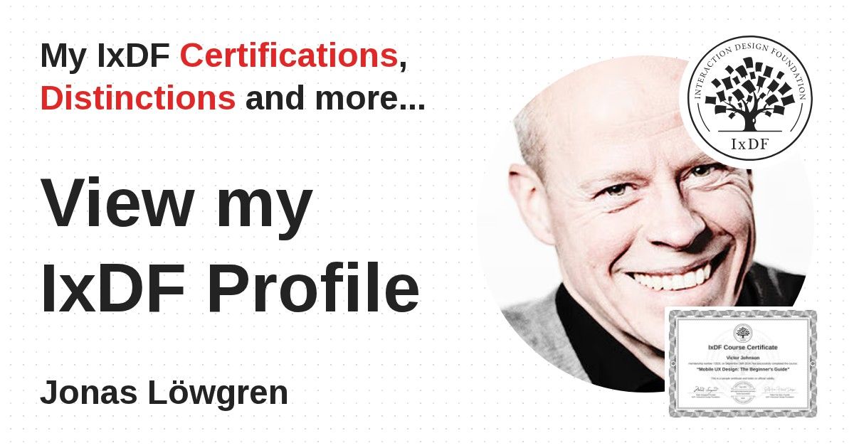 Distinctions are conferred upon Jonas Löwgren in formal recognition of their notable achievements and contributions, as stipulated by the IxDF Educational Codex.