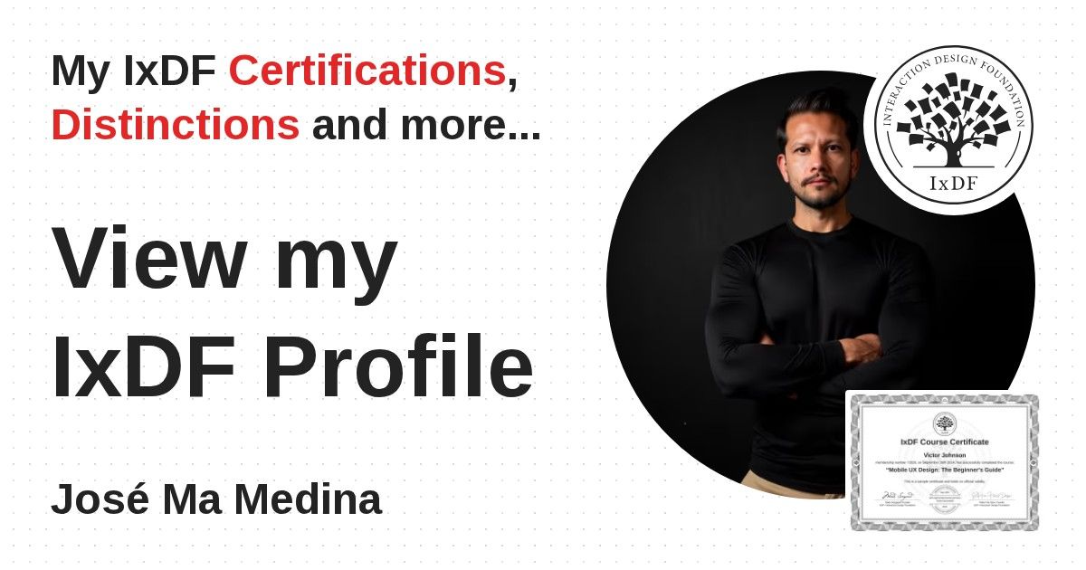 Distinctions are conferred upon José Ma Medina in formal recognition of their notable achievements and contributions, as stipulated by the IxDF Educational Codex.