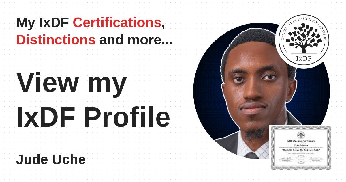 Distinctions are conferred upon Jude Uche in formal recognition of their notable achievements and contributions, as stipulated by the IxDF Educational Codex.