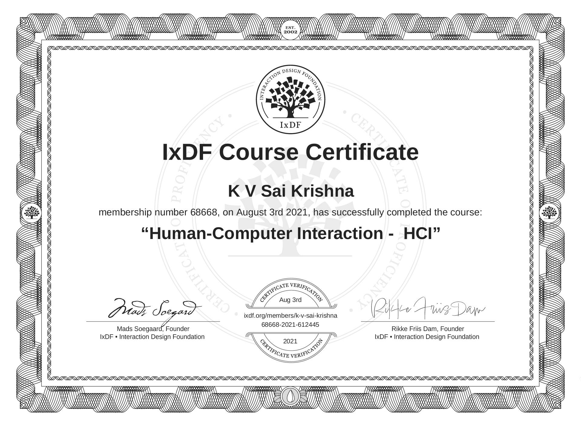 K V Sai Krishna's Course Certificate: Human-Computer Interaction - HCI